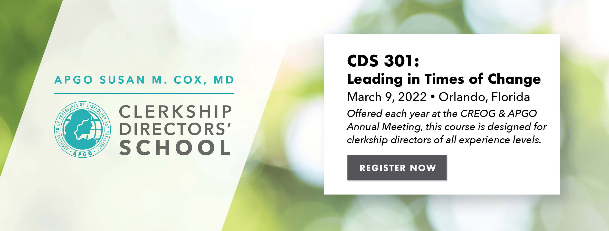 Coming Next Month: CREOG & APGO Annual MeetingThe 2022 CREOG & APGO Annual Meeting is March 9-12, in Orlando, Florida, with the theme Together Again, Together Forever: Med Ed Family Reunion. Advanced registration is closed, but you can still register online.